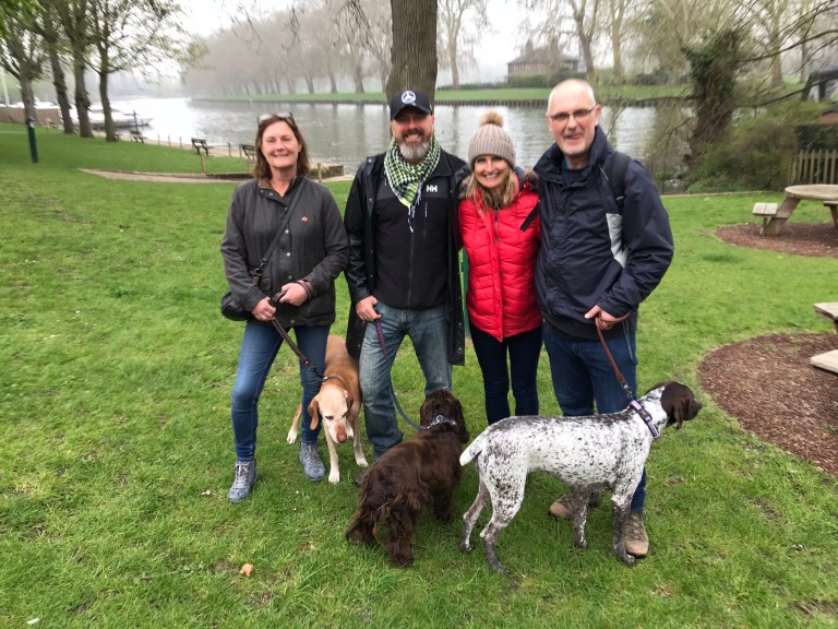 My old friends Craig & Sarah from 38 years back joined me today together with Neil Brotherstone from Yateley who I’ve known for many years, Masie their dog, and Henny myself and Tania all headed off in the direction of Windsor. Great scenery with the castle on our left and the flag flying at full mast – did Her Maj know we were coming?